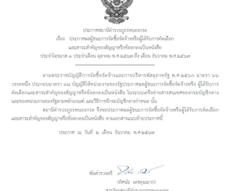 ประกาศการจัดซื้อจัดจ้าง ประจำเดือน ธันวาคม ๒๕๖๗