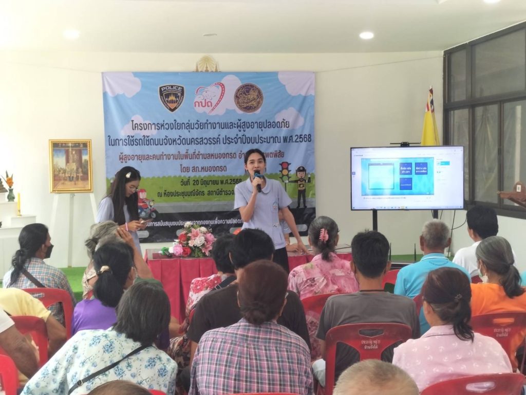 จัดอบรมโครงการห่วงใยกลุ่มวัยทำงานและผู้สูงอายุ ปลอดภัยในการใช้รถใช้ถนน จังหวัดนครสวรรค์ ประจำปีงบ พ.ศ.2568 20 มิถุนายน 2025 โดย admin / ข่าวภารกิจผู้บังคับบัญชา,การมีส่วนร่วมของหัวหน้าสถานี,ข่าวประชาสัมพันธ์,ข่าวกิจกรรม,ข่าวประชาสัมพันธ์,ข่าวภารกิจผู้บังคับบัญชา,ข่าวประชาสัมพันธ์,ผลการปฏิบัติงานในสถานีตำรวจ 5 สายงาน,งานจราจร,ข่าวประชาสัมพันธ์,ผลการปฏิบัติงานในสถานีตำรวจ 5 สายงาน,งานอำนวยการ,ข่าวประชาสัมพันธ์,ผลการปฏิบัติงานในสถานีตำรวจ 5 สายงาน,ป้องกันปราบปราม,ข่าวประชาสัมพันธ์,ผลการปฏิบัติงานในสถานีตำรวจ 5 สายงาน สภ.หนองกรดเรียน ผู้บังคับบัญชาวันที่ 20 มิถุนายน 2568 เวลา 08.30 น.พ.ต.ท.ทัศนัย เดชคุณมากสว.สภ.หนองกรด (ประธานในพิธีฯ) ,ร.ต.อ.กชธนณฐ ยอดบ่อพลับรอง สวป.สภ.หนองกรด,ร.ต.ต.นิติรัฐ แตงน้อย รอง สว.(ป.)สภ.หนองกรด พร้อมข้าราชการตำรวจ สภ.หนองกรดร่วมกับคณะวิทยากร ได้จัดอบรมโครงการห่วงใยกลุ่มวัยทำงานและผู้สูงอายุ ปลอดภัยในการใช้รถใช้ถนน จังหวัดนครสวรรค์ ประจำปีงบ พ.ศ.2568 ให้กับประชาชน จำนวน 50 คน โดยมีวัตถุประสงค์ ดังนี้1.เพื่อลดอุบัติเหตุทางถนนในพื้นที่รับผิดชอบ สภ.หนองกรด2.เพื่อให้กลุ่มวัยทำงานและผู้สูงอายุ มีความรู้ความเข้าใจในการใช้ถนนอย่างปลอดภัยและนำความรู้ไปถ่ายทอดแก่บุตรหลานและผู้ใกล้ชิดโดยได้รับงบสนับสนุนจากสำนักงานขนส่งจังหมดนครสวรรค์ กองทุนเพื่อความปลอดภัยในการใช้รถใช้ถนน(กปถ.)ณ ห้องประชุมมณีจักร สภ.หนองกรด อ.บรรพตพิสัย จ.นครสวรรค์จึงเรียนมาเพื่อโปรดทราบ