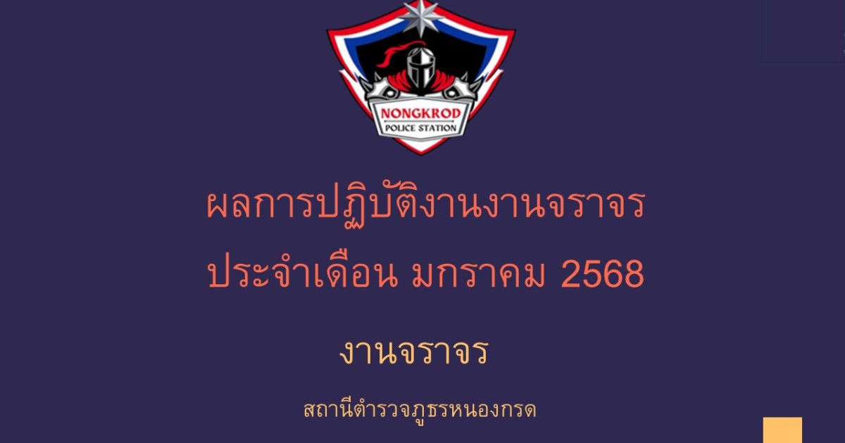ผลการปฏิบัติงานงานจราจร ประจำเดือน มกราคม 2568 31 มกราคม 2025 โดย admin / ข่าวประชาสัมพันธ์,ผลการปฏิบัติงานในสถานีตำรวจ 5 สายงาน,งานจราจร,ข่าวประชาสัมพันธ์,ผลการปฏิบัติงานในสถานีตำรวจ 5 สายงาน ดาวน์โหลดไฟล์ PDF ผลการปฏิบัติงาน เดือน ม.ค.68 ดาวน์โหลดไฟล์ WORD ผลการปฏิบัติงาน เดือน ม.ค.68