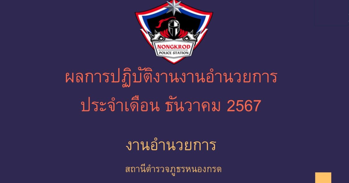 ผลการปฏิบัติงานงานอำนวยการ ประจำเดือน ธันวาคม 2567 31 ธันวาคม 2024 โดย admin / ข่าวประชาสัมพันธ์,ผลการปฏิบัติงานในสถานีตำรวจ 5 สายงาน,งานอำนวยการ,ข่าวประชาสัมพันธ์,ผลการปฏิบัติงานในสถานีตำรวจ 5 สายงาน ดาวน์โหลดไฟล์ PDF ผลการปฏิบัติงาน เดือน ธ.ค.67 ดาวน์โหลดไฟล์ WORD ผลการปฏิบัติงาน เดือน ธ.ค.67