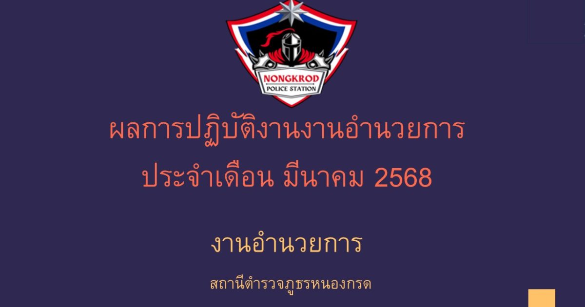 ผลการปฏิบัติงานงานอำนวยการ ประจำเดือน มีนาคม 2568 31 มีนาคม 2025 โดย admin / ข่าวประชาสัมพันธ์,ผลการปฏิบัติงานในสถานีตำรวจ 5 สายงาน,งานอำนวยการ,ข่าวประชาสัมพันธ์,ผลการปฏิบัติงานในสถานีตำรวจ 5 สายงาน ดาวน์โหลดไฟล์ PDF ผลการปฏิบัติงาน เดือน มี.ค.68 ดาวน์โหลดไฟล์ WORD ผลการปฏิบัติงาน เดือน มี.ค.68