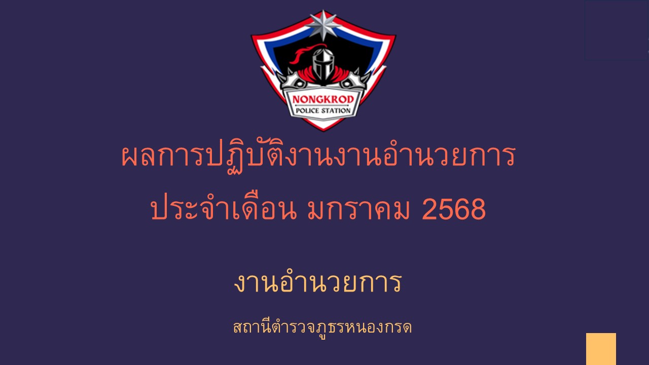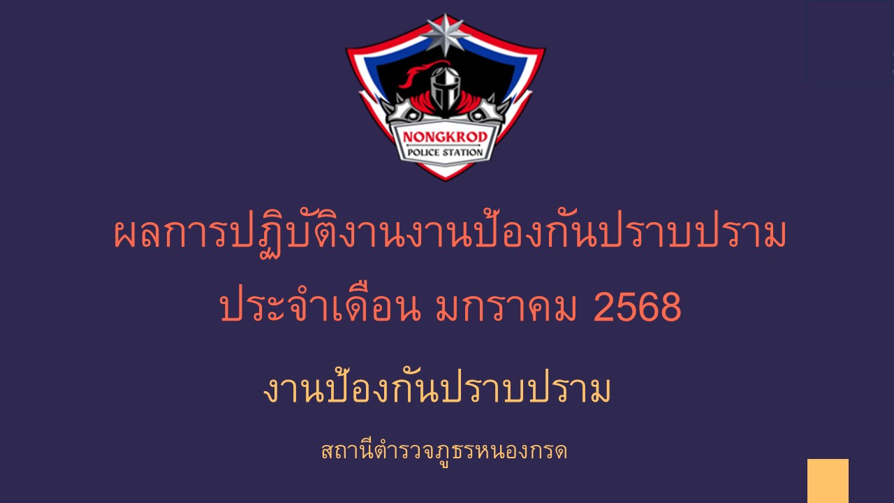 ผลการปฏิบัติงานงานสอบสวน ประจำเดือน มกราคม 2568