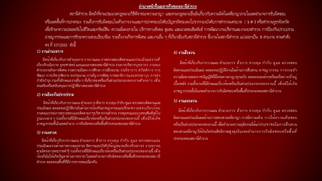คำสั่ง ตร. ที่ 537/2555 เรื่อง การกำหนดอำนาจหน้าที่ของตำแหน่งในสถานีตำรวจ